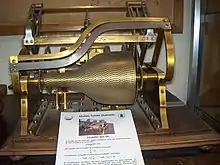 Since the middle of the 19th century, several mechanical devices were known, from integrators, multipliers, to the Analytical engine of Charles Babbage. The work of Torres in this matter is framed within this tradition, which began in 1893 with the presentation of the "Memória sobre las máquinas algébricas" ("Memory about algebraic machines") at the Spanish Royal Academy of Sciences in Madrid.[29] This paper was commented in a report by Eduardo Saavedra in 1894 and published in the Revista de Obras Públicas.[30] Torres developed a first model of the machine, and Saavedra recommended that the final project of the device be financed.[12] Torres' calculating machine was considered in its time as an extraordinary event in the course of Spanish scientific production. In 1895 he presented "Machines algébriques", accompanied by his demonstration model, at the Bordeaux Congress of the Association pour l'Avancement des Sciences, and in Paris in the Comptes rendus de l'Académie des Sciences.[31] Later on, in 1900, he presented a more detailed work, "Machines à calculer" ("Calculating machines") at the Paris Academy of Sciences. The commission, informed favorably by Marcel Deprez, Henri Poincaré and Paul Appell, asked the academy for its publication,[12][32] highlighting: "... Mr. Torres has given a theoretical, general and complete solution to the problem of the construction of algebraic and transcendental relations by means of machines..."[33]