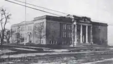 Enrollment in the school increased rapidly;[8] indeed, the town's population, which had about doubled between 1900 and 1910, doubled again by 1920.[11] An addition was built onto the east side of the school in 1917, that featured a larger facade which was oriented directly onto Broad Avenue.[9] Land immediately adjacent to the school was acquired for a football field in 1926 and dedicated in 1928.[9] Another addition, this time onto the west side of the school, was built in 1937, and included a lunchroom;[8] this new wing was a product of one or both of the New Deal agencies, the Public Works Administration and the Works Progress Administration.[19][22]