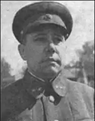 Leonid Mikhaylovich Sandalov (Russian: Леонид Михайлович Сандалов) (10 April 1900, Vichuga, Ivanovo Oblast – October 23, 1987) was a Soviet military leader with the rank of colonel-general. During World War II, he led staffs of the armies and fronts. After the war, he led the staffs of military districts, he was Deputy Chief of Staff of the Army. A talented and prolific memoirist and military analyst. Honorary Citizen of Vichuga, Kobrin, and Riga.