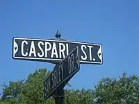 Caspari Street sign at intersection with Sam Sibley Drive in Natchitoches, Louisiana