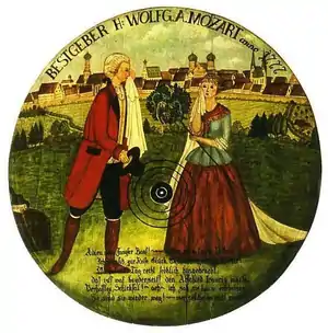 Bölzlschiessen target, Wolfgang and his cousin Maria Anna Thekla Mozart, October 1777