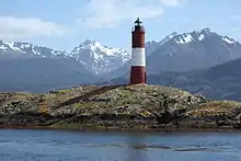 Les Eclaireurs Lighthouse (the French name "Les Éclaireurs" means "the Scouts") is a slightly conically shaped lighthouse standing on the northeasternmost island of the five or more Les Eclaireurs islands, which it takes its name from, 5 nautical miles (9 km) east of Ushuaia in the Beagle Channel, Tierra del Fuego, southern Argentina.[2]