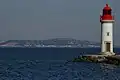 The Les Onglous Lighthouse is the terminating point of the Canal du Midi where the canal enters the Étang de Thau.[1][2][3] The red and white lighthouse is at the tip of a short jetty projecting into the Étang de Thau. It is located on the east jetty at the canal entrance, about 1.5 km (0.93 mi) south of Marseillan in the Hérault department. The Isthmus of Onglous is a narrow strip of land between the Étang and the Mediterranean.[4]