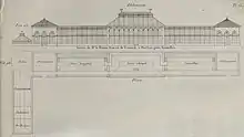 Cross-section of the monumental greenhouses designed by Charles-Henri Petersen.