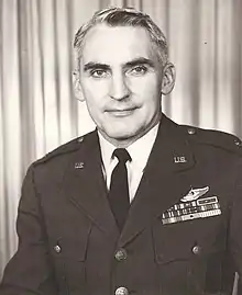 He is a command pilot. His military decorations and awards include the Silver Star, Legion of Merit with oak leaf cluster, Distinguished Flying Cross with oak leaf cluster, Meritorious Service Medal, Air Medal with 16 oak leaf clusters, Air Force Commendation Medal, Presidential Unit Citation Emblem, Distinguished Unit Citation Emblem, and the Air Force Outstanding Unit Award Ribbon.