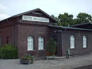 Lette (Kr Coesfeld) (German: Bahnhof Lette (Kr Coesfeld)) is a railway station in the town of Lette, North Rhine-Westphalia, Germany. The station lies on the Dortmund–Enschede railway and the train services are operated by Deutsche Bahn.