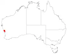 This leucopogon grows in heath and low woodland between Dongara, Eneabba and the Arrino district in the Geraldton Sandplains bioregion of south-western Western Australia.[2][4]
