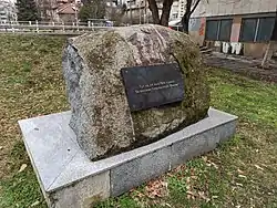 Monument, marking the place of creation of Sport Club Levski Sofia, near the National Palace of Culture in the city center