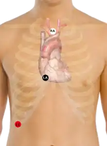 Electrode placement for Lewis lead; RL electrode (green), not shown, remains on leg