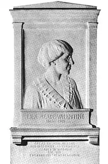 Fellow Equal Suffrage League co-founding member Adele Goodman Clark chaired the Lila Meade Valentine Memorial Foundation in 1927 with the aim of honoring Valentine in the Virginia State Capitol.[22] The General Assembly placed a marble bas-relief portrait by Harriet Whitney Frishmuth of Valentine, presented by the Lila Meade Valentine Memorial Foundation, in the Virginia State Capitol in 1936. She was the first woman to be honored there.[2][6][23]