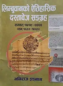 Limbuvanko Eitihasik Dastabej Sangraha 1662–1963 AD (Nepali: लिम्बुवानको ऐतिहासिक दस्तावेज संग्रह: सम्वत् १७१९–२०२०, lit.'Collection of historical records from Limbuwan 1662–1963 CE') is a historical book about the Limbuwan region in eastern part of Nepal written and compiled by Bhagi Raj Ingnam.[1] It was published on 25 December 2020 by Yakthung Publication and won the Madan Puraskar for the year 2020 (2077 BS).[2][3][4]
