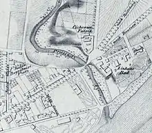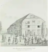 In 1734, a Lusthäuschen was built behind the Black Gate directly on the Elbe, which in 1753 received a licence to serve beer and wine ("Drachenschänke") as well as to bake, slaughter and keep a forge. After the doctor Peter Ambrosius Lehmann received permission to set up a mineral bath, he had an open-air bath with bathhouse built there in 1763, which offered 28 tubs as well as summer quarters in 1824 and was operated until 1860. In 1764, Christian Gottlob Reuß built a garden restaurant there. In 1766, Carl Christian Lincke acquired the area and developed it into a place for excursions, building a summer theatre for travelling theatre companies on it in 1775/76, where, among others, the Seyler Theatre Company and the Secondasche Truppe moved in.[2] Lincke was favoured by the 20-year tax exemption. In 1776, a new comedian house was created, which provided excellent conditions for the music theatres and singspiels, and later operas, that performed in the summer, thus filling the gap that the electoral theatres could not serve. From 1816–17 to 1858, the Royal Court Theatre or King Friedrich August I leased the "Theater auf dem Linckeschen Bade" as an additional venue, alongside the Morettisches Opernhaus, for the summer months.[3] This was followed in 1853 by a large concert hall built by Bernhard Hempel,[4] which, however, burned down in 1859. A year earlier, the theatre building was also demolished.[5] In 1867, it reopened as the "Grand Théâtre des Varietés". By 1901, there was an elegant wine restaurant, a tunnel tavern, a hall, as well as a concert garden and numerous verandas, collectively known as the "Restaurationsgarten", which existed at least until the 1920s[6] and is reported to have had 15,000 seats in 1911. During the Bombing of Dresden towards the end of the Second World War, the area was largely destroyed. Only the "Drachenschänke" remained, which was used as a restaurant until a few years ago, but now houses flats.