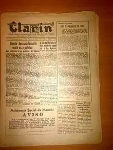 "El Clarín" newspaper, referring in harsh terms to the president Velasco Ibarra.