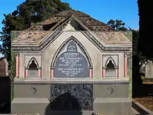 The trompe l'oeil on the Peacock Mausoleum in Linwood Cemetery, Christchurch.