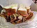 Club sandwich Nationwide Sliced cooked poultry, fried bacon, lettuce, tomato, and mayonnaise, often on toast