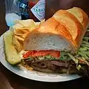 French dip Nationwide; origins in Los Angeles Thinly sliced roast beef on a French roll or baguette, usually served au jus