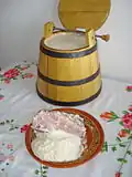 Međimurje | A dish prepared from high-quality parts of fresh pork meat (leg or loin), which are after processing stored in tiblica (lodrica), a large wood container of a special shape (truncated cone) in which the meat is preserved in previously prepared, cooled salted lard |