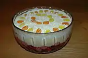 Trifle Sweet National Cold dessert with varied ingredients, often sponge fingers and fortified wine, jelly, custard, and whipped cream, usually in layers