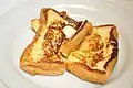 Köyhät ritarit Day-old French bread dipped in a cardamom-cinnamon spiced milk-egg mixture, then fried on either side and served with cream and berries