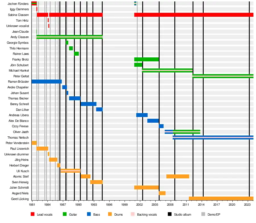 - ↑ "Der Anfang... ohne Sabina und Andy... von Holy Moses: 1981" (in German). Holy Moses. Archived from the original on 10 April 2005. Retrieved 5 December 2021.