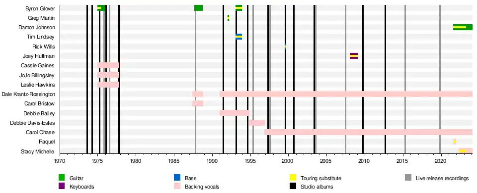 | Cassie Gaines | 1975–1977 (until her death)[73][15] | backing vocals |