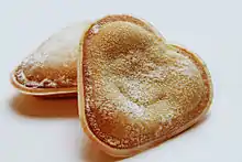 Pastry made of shortcrust dough formed into hearts, filled with vanilla cream. |