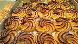 Pastry | Fried pastry originating from Hayrabolu made from cheese and semolina, decorated with tahin and hazelnuts. It resembles the Kemalpaşa tatlısı |