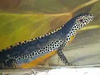 | Lissotriton vulgaris | smooth newt | Found in the whole country, most commonly in the lowlands, usually up to 1500 m altitude[5] (1087 m in the Tatra Mountains, and 1250 m in the Karkonosze)[6] | ![]() | |
