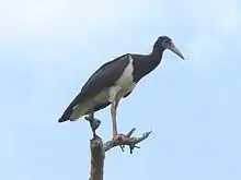 The crab-plover is related to the waders. It resembles a plover but with very long grey legs and a strong heavy black bill similar to a tern. It has black-and-white plumage, a long neck, partially webbed feet and a bill designed for eating crabs.