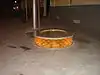 Not functional, the fountain is uninstalled from its basin. It used to contain spheres made of stainless steel and chrome and it was designed together with the huge lamp above the fountain. | |
