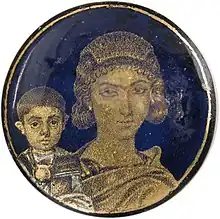 The medallion is often referred to as a portrait of Galla Placidia and her children, but the current scholarly consensus is strongly against this 18th-century identification.[2][3]