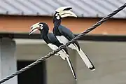 Hornbills are birds in the families Bucerotidae and Bucorvidae. There are currently 62 extant species of hornbills recognised by the International Ornithologists' Union, two in Bucorvidae and 60 in Bucerotidae.[1] Many species of fossil hornbills are known from the Miocene onwards; however, their exact number and taxonomy are unsettled due to ongoing discoveries.