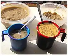 - Mămăligă – made out of yellow maize flour, traditional in Romania and Moldova. It is similar to the Italian polenta.[9]
