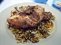 Dirty rice Cajun cuisine, Creole cuisine Pictured is dirty rice topped with a pork chop.