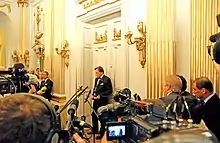 Announcement of the Laureate of the Nobel Prize in Literature, one of the world's richest literary prizes, at the Swedish Academy in Stockholm (2008).