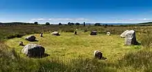 Mitchell's Fold – A 30 stone ring (15 still standing). |