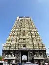 The gopuram's origins can be traced back to early structures built under the south Indian kings of the vijaynagara, Pallava and Chola dynasties. By the twelfth century, during the Pandya dynasty, these gateways became a dominant feature of a temple's outer appearance, eventually overshadowing the inner sanctuary which became obscured from view by the gopuram's colossal size.[3] It also dominated the inner sanctum in amount of ornamentation. Often a shrine has more than one gopuram.[4]
