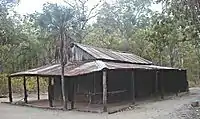 In 1924 a small homestead was built by the Sargent family on their leased land in the lowlands near Tolmer Falls where there was reliable water and reasonable grazing for their cattle. Their farm proved successful and in 1928 they built Blyth Homestead as an outstation a little further south, so their cattle could take advantage of the good grazing among the paperbarks in this area. Typical of other structures of that time, the homestead is supported with cypress pine tied together with heavy wire and covered with corrugated iron. The family was able to farm their own vegetable and fruit crops, and held up to 13,500 head of cattle, due to the permanent water nearby. After 40 years, the Sargent family sold the lease to the Townsend family who farmed until the early 1960s. The abandoned homestead stands as a stark reminder of the tough conditions graziers faced.