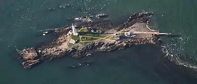 Little Brewster Island is a rocky outer island in the Boston Harbor Islands National Recreation Area. It is best known as the location of Boston Light, one of only five remaining Coast Guard-staffed lighthouses in the United States, and an important navigation aid for traffic to and from the Port of Boston. The island is situated some 9 miles (14 km) offshore of downtown Boston and has a permanent size of 3 acres (12,000 m2), plus an intertidal zone of a further 4 acres (16,000 m2).[1]