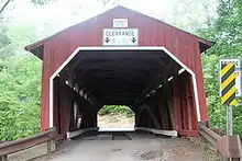 Several covered bridges cross Little Fishing Creek. The Creasyville Covered Bridge (formerly known as the Derr Bridge) is a Queenpost truss covered bridge that was built over Little Fishing Creek in 1881 for a cost of $301.25. It is 44.5 feet (13.6 m) long and crosses the creek north of Millville and Iola. The Jud Christie Covered Bridge No. 95, which is also a Queenpost truss bridge, crosses the creek between Jackson Township and Pine Township. It is 53 feet (16 m) long and was built in 1876 for $239.00. The Sam Eckman Covered Bridge No. 92 crosses the creek between Pine Township and Greenwood Township and was built in 1876 for $498.00. It is 66 feet (20 m) long. The Wanich Covered Bridge No. 69 was built in 1844 for $500.00 and is 98 feet (30 m) long.[24]