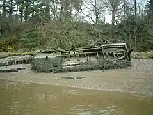 A wooden wreck, the remains of two wooden vessels lie on the west side of Little Island. This is a gabbard, from recollection acquired around 1963 from the Waterford harbour master/ authority who already used it as an access pontoon. On The Island, It was tied up to a barge (the M71) in turn tied to the jetty. It was the means to get from the prong (row boat) to the land at all stages of the tide.
