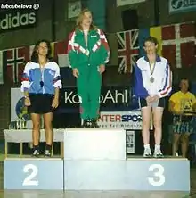 She has won gold medals in national, European and world championships and has set world records during her athletic career.[1] The President of Belarus honored her with the nation's top sports award, the "Honoured Master Sport the Republic of Belarus"[2] Bialova is an International Powerlifting Federation champion and world record holder in the bench press. She is a four-time gold medalist and European champion in bench press.[3] She is a senior coach at the School of Olympic Reserve and athletics trainer-instructor for disabled people in Paralympics sport. Liubou Bialova is the Florida Champion of Senior Games in the bench press.