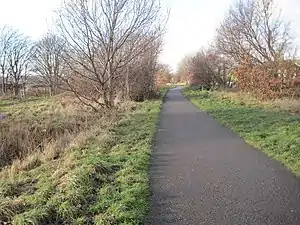 ![]() The site of the station, looking northwest towards Cleckheaton Spen, in 2013 | |