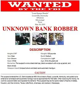 - ↑ "Loan Ranger Bandit Sought by FBI". FBI Archives. 2013-06-13. Archived from the original on 2018-07-12.
