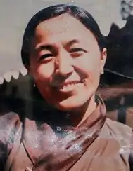 Lobsang Dolma Khangkar (Tibetan: བློ་བཟང་སྒྲོལ་མ་ཁང་དཀར, Wylie: blo bzang sgrol ma khang dkar) also called Lobsang Dolma or Ama Lobsang Dolma (July 6, 1934, Kyirong, Tibet - December 15, 1989, Dharamsala, India[1]) was a 13th generation doctor of traditional Tibetan medicine.[2] She travelled with the Dalai Lama in 1959 from Tibet to India. She was the First woman to become chief physician of the Men-Tsee-Khang. She and the others carried her daughters on their backs into what is now Dharamsala, India: Tsewang Dolkar Khangkar and Pasang Gyalmo Khangkar, succeeded her in the family line of doctors, the Khangkar.