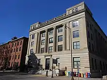 All counties in the state are led by an elected board of commissioners who employ a county manager.[27] Boards of commissioners vary in size from three to 11 members. In addition to the manager, the commissioners usually hire the county's clerk, attorney, assessor, and tax collector. Unlike in municipal council-manager governments in the state, the board of commissioners usually must approve all of the manager's hiring decisions unless they explicitly delegate sole hiring authority to the manager.[28] County government is North Carolina is also more fractured than municipal government, due to the presence of other elected officials such as sheriffs and registers of deeds, who have control over their own staff.[29] The office of county sheriff is established by the constitution, and sheriffs are not subject to the oversight of the state government.[30] County government is largely funded through local property taxes.[31]