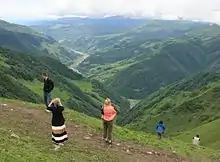 Georgian pilgrims at Lomisi look over the Ksani valley, separated from the rest of Georgia by the Russian border guards since 2008.