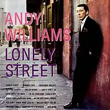 Lonely Street is the fifth studio album by American pop singer Andy Williams, released in late 1959 through Cadence Records.[1] This, his fifth LP of new material for the label, is described by William Ruhlmann on AllMusic.com as "an album full of songs of lost love and loneliness that found Williams using more of the Mel Tormé-like foggy lower register of his voice."[4] The liner notes on the back of the album jacket read, "The selections in Lonely Street, Andy confides, are those for which he feels a special affection. Every vocalist has a few personal favorites... and it is quite clear to the listener that this collection presents songs which Andy Williams believes, feels -- and loves."[5]