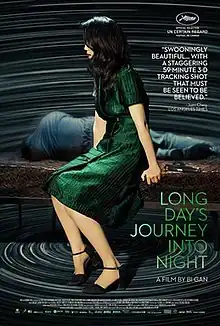 Long Day's Journey into Night[lower-alpha 1] (Chinese: 地球最後的夜晚; pinyin: Dìqiú Zuìhòu de Yèwǎn; lit. 'Last evenings on Earth') is a 2018 Chinese drama film directed by Bi Gan. The film was screened in the Un Certain Regard section at the 2018 Cannes Film Festival.[1][3][4] Despite the film's English-language title, it is unrelated to the 1956 Eugene O'Neill play of the same name.[5] It is notable for its final 59 minutes, which consists of one unbroken long take in 3D.[6]