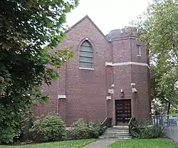 The district consists of semi-detached rowhouses, most of which have been converted into S.R.O.'s (Single Room Occupancy).[2] The district includes 61 contributing buildings. It is primarily residential, but also includes the site of the former Prospect Hospital,[3] two churches (United Church and St. Margaret's Episcopal Church), and a much altered estate house (Patrolman P. Lynch Community Center).[4] Most of the semi-detached rowhouses were designed at the same time by one architect, Warren C. Dickerson.[5]
